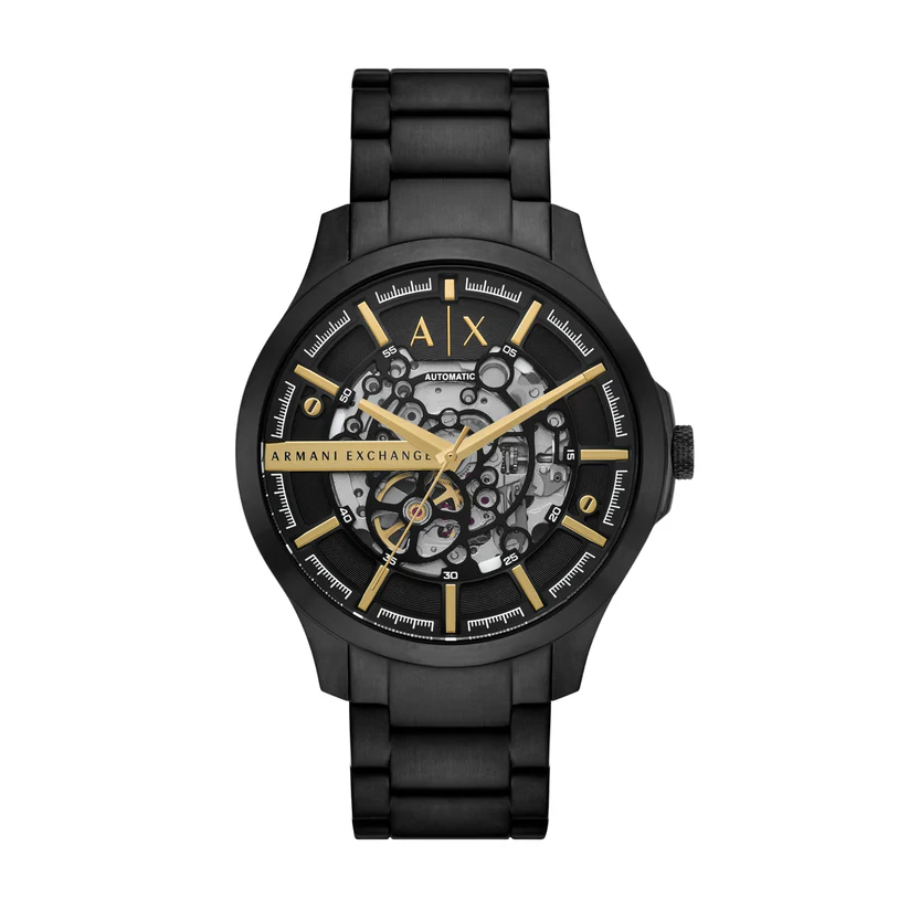 Product Description : Stainless steel elegance meets precision with the Armani Exchange Automatic Black Stainless Steel Watch. This 46mm round case timepiece features a sleek black dial with a CD finish, protected by a durable mineral crystal. The automatic 3-hand movement ensures reliable timekeeping, while the black stainless steel bracelet adds a touch of sophistication. Perfect for the modern man who values both style and functionality.