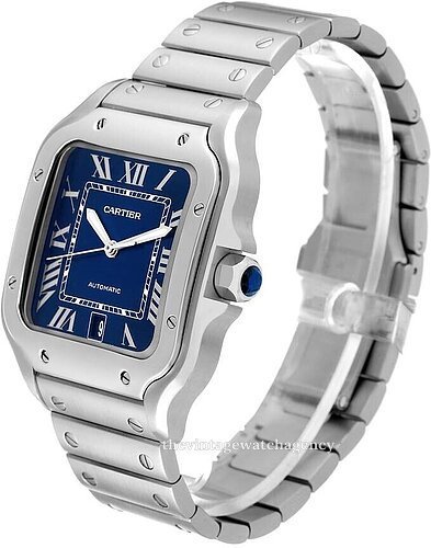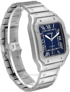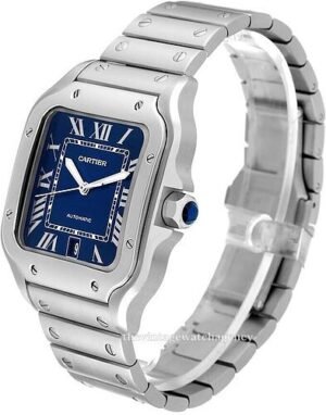 Featuring a sleek silver case paired with a captivating blue dial, this timepiece combines elegance with functionality. The square shape, iconic of the Santos line, is a timeless design that speaks to both tradition and modernity. With its automatic movement, the watch guarantees precision and reliability.