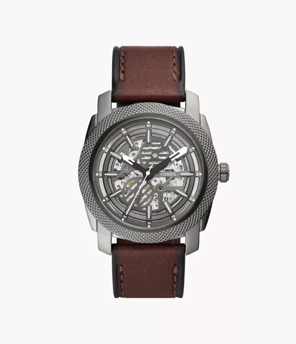 The Fossil Machine Automatic Brown Leather watch perfectly blends classic and contemporary styles. Its sophisticated brown leather strap complements the robust watch face, offering a refined accessory for any occasion.